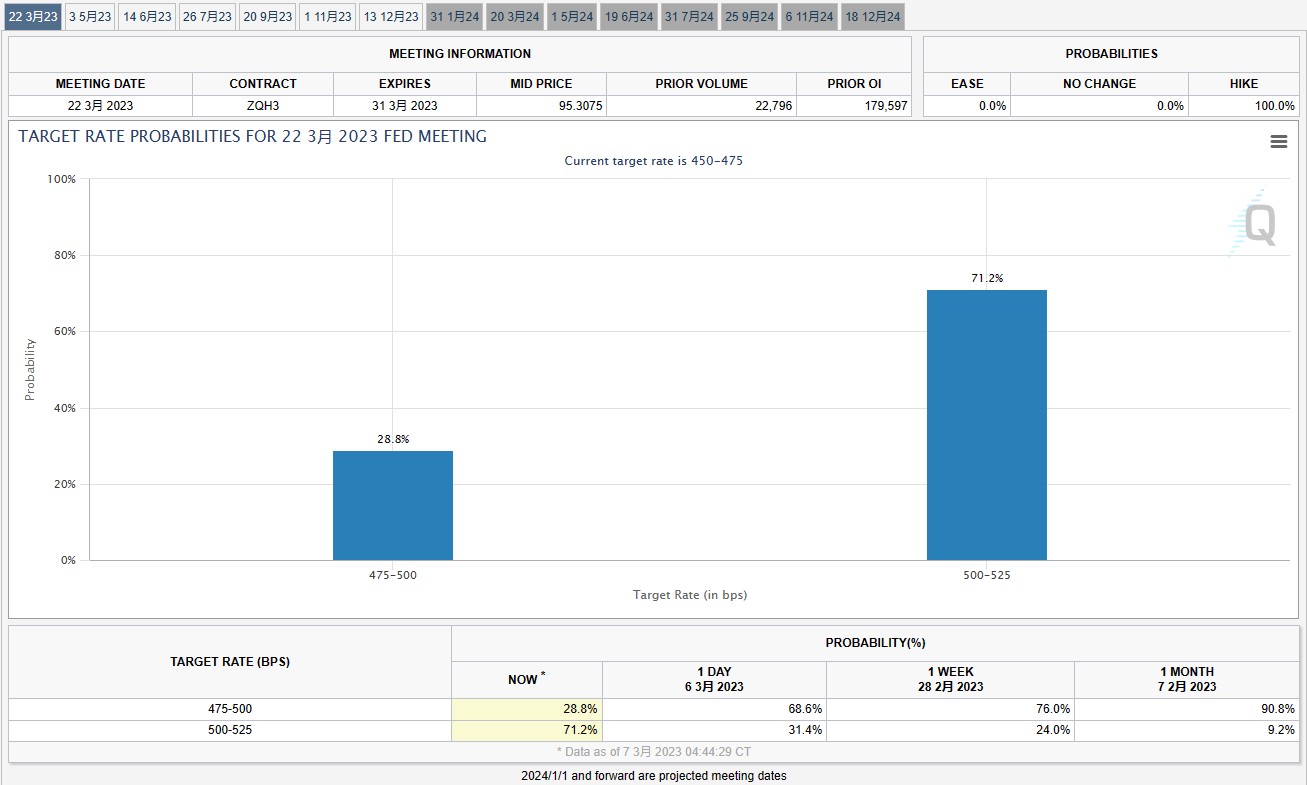 在鮑威爾發表講話後,投資者加大了對美聯儲將在本月晚些時候加息 50 個基點的押注。利率期貨市場預計,3 月加息 50 個基點的幾率超過 70%,一天前只有約 31%。