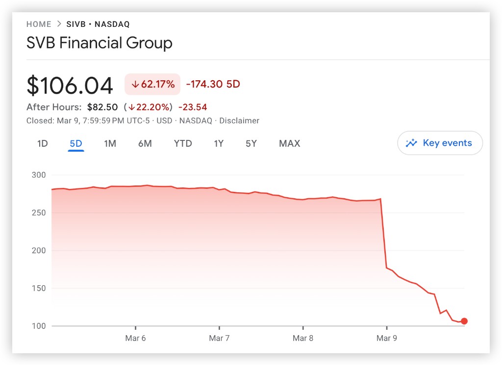 隔夜美國銀行業的暴跌,成了震動整個市場的黑天鵝事件。處於漩渦中心的,是一家有近 40 年曆史的大型商業銀行——硅谷銀行(Silicon Valley Bank,下文簡稱 SVB)。一紙看似問題不大的融資公告發布後,SVB 母公司 SVB Financial Group 股價閃崩 60%,又在盤後重挫 22%。