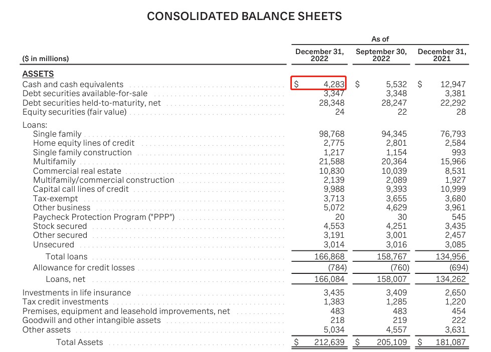 令人警惕的是,FRC 去年年底的流動資金略微緊張,現金僅略高於 40 億美元,低於前一年的近 130 億美元。這意味着這家銀行同樣無法應對大規模擠兑。