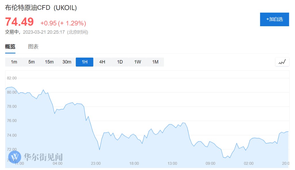 截至目前,布油報每桶 74.49 美元。