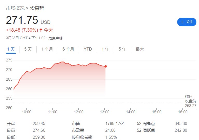 消息傳出後,埃森哲股價一度大漲近 8.5%,隨後漲幅略有收窄。