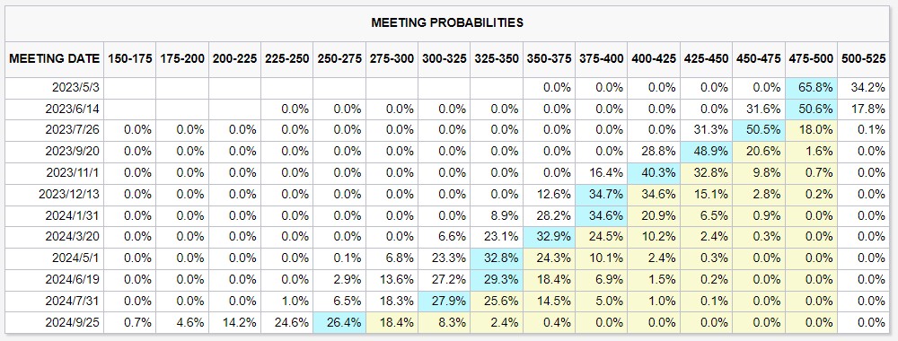 根據 CME“美聯儲觀察工具”,市場目前預計美聯儲 5 月維持利率不變的可能性達到 65.8%;預計美聯儲在 7 月、9 月降息 25 個基點的可能性均達到近 50%。市場還普遍認為美聯儲今年將降息 75-100 個基點。