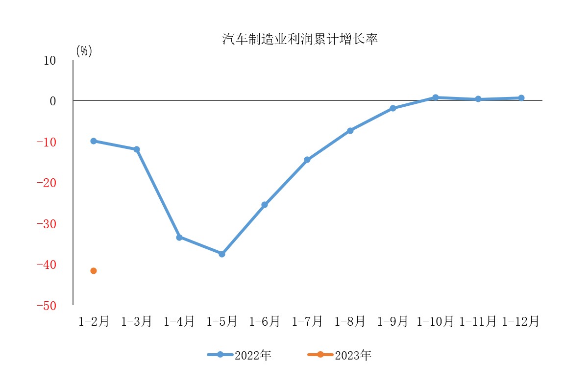 2023 年 1-2 月汽車製造業利潤 414.3 億元 同比下降 41.7%