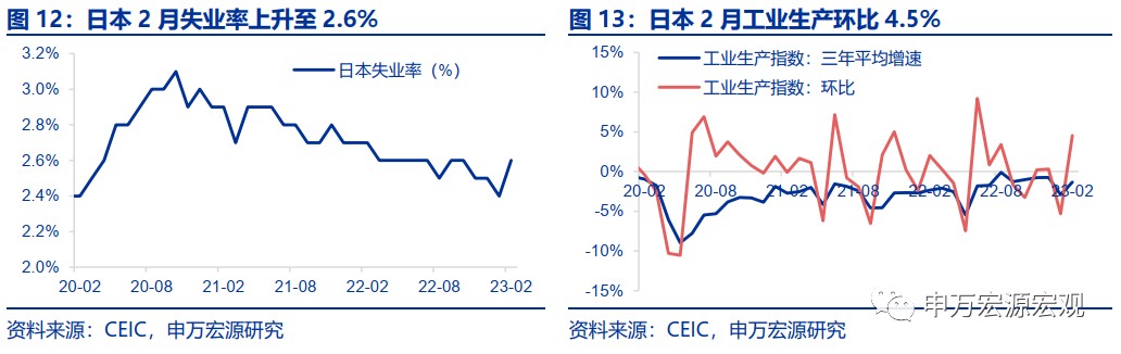 供給與就業:日本 2 月失業率上升至 2.6%,這是自去年 10 月以來的最高讀數。日本 2 月工業生產環比 4.5%,增幅優於預期,主要受汽車生產大增所帶動。本週美國粗鋼產能利用率小幅回落至 75.1%。本週美國初領失業金人數超預期增加 7 千人。