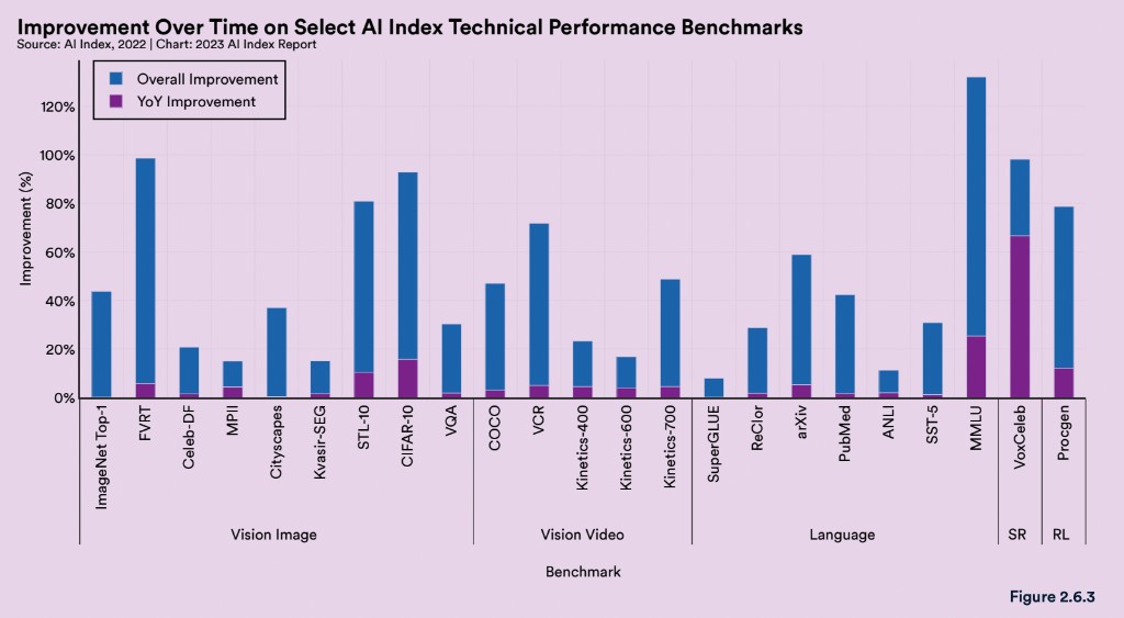 人工智能領域繼續發佈着最先進的產品,但很多改進是微不足道的。此外,基準架構越來越趨於飽和。同時,新的、更全面的基準架構,如 BIG-bench 和 HELM 等正發佈。