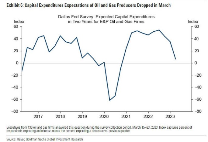 達拉斯聯儲在 3 月 15-23 日收集的一項調查顯示,預計未來 2 年資本支出上升的石油和天然氣高管比例大幅下降。
