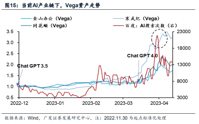 該機構還認為,A 股 AI 傳播熱度與高 Vega 資產的節奏一致,因此應用端辦公軟件、智能家居、遊戲、AI 大模型等都是值得投資的領域。