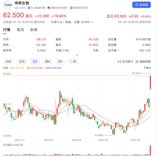 公司股價應聲上漲 20%。此外,憑藉良好的數據,傳奇生物從私人投資者處完成募集約 2 億美元資金,股份發行價 26.12 美元/每股美國存托股份。