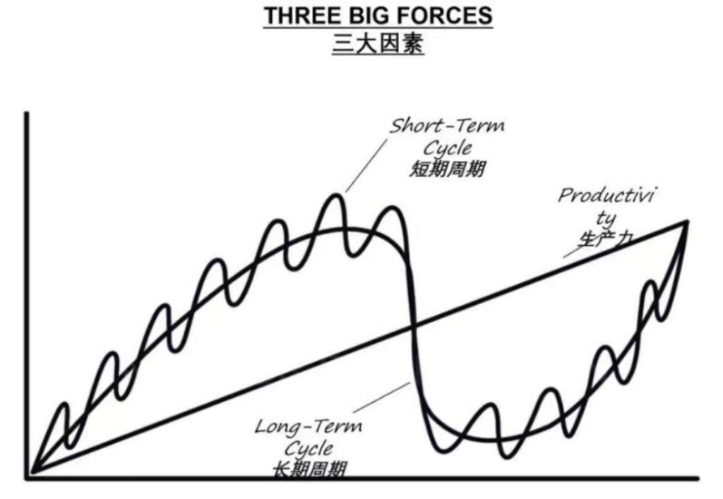 很多時候,許多短週期累計形成一個大的長週期。在這個週期過程中,債務率上升,負債變得太大的話,就導致債務減計和鉅額債務貨幣化。這是一個大週期的大概情況。伴隨金融經濟週期的,還有各國內部的政治週期以及國家之間的地緣政治週期。這是因為經濟和政治之間會相互影響。