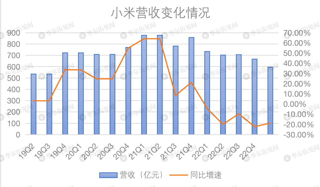 5 月 23 日港股盤後,小米集團公佈第一季度業績報告。報告顯示,一季度小米營收 595 億元人民幣,同比下滑 18.9%,高於預估 588.1 億元人民幣。