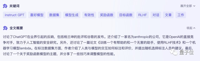 甚至還幫我一鍵總結出了關鍵詞、全文摘要和學習要點。