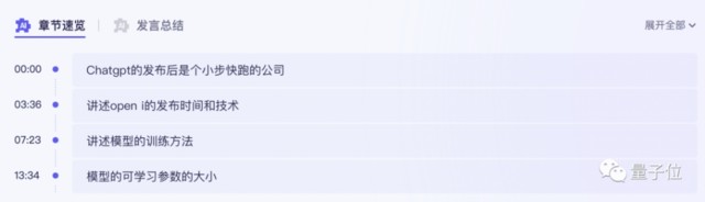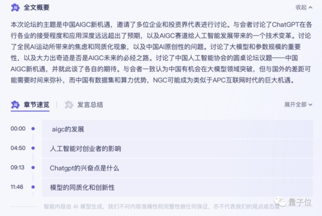 不僅給出了關鍵詞,圓桌討論的內容也總結得很到位,並且還給視頻劃分了關鍵點。