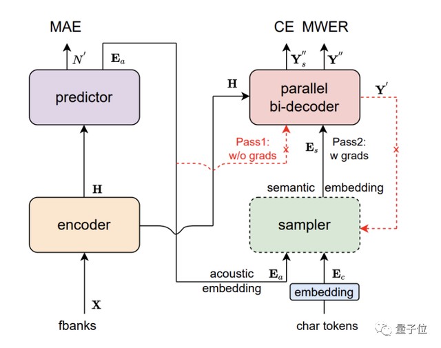 Paraformer 是單輪非自迴歸模型,由編碼器、預測器、採樣器、解碼器和損失函數這五個部分組成。