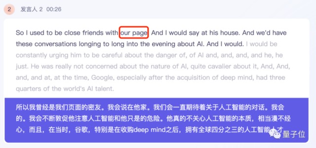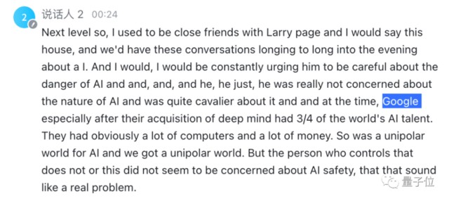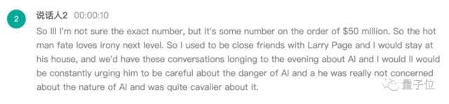 還是先來看聽悟給出的結果。在馬斯克的這一段回答中,聽悟沒有分辨出拉里·佩奇的名字,除此之外基本都能識別正確。