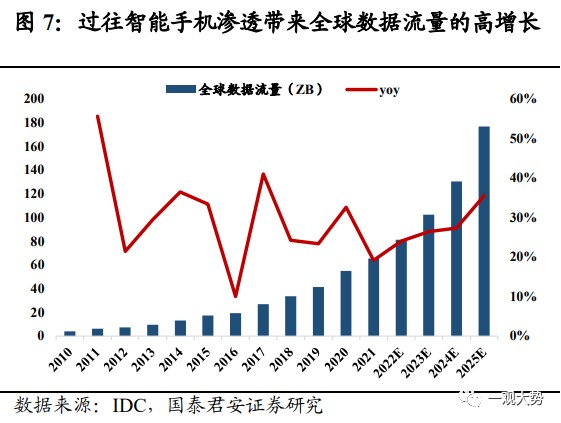 苹果 MR 作为虚实交互入口,成为元宇宙初级形态概念具象化的又一关键拼图。作为元宇宙进入接口之一,MR 是元宇宙计算、通信、感知、交互、人工智能等技术的外显。与智能手机载体不同,MR 将二维扁平的网络世界转化为可视性、可操作性更强的三维世界,能够使用户实现物理世界与虚拟世界的跨越,更能够满足高频交互和沉浸拟真的特征,相比于屏幕类设备更具备信息传递优势,同时也对底层技术提出更高要求,为内容端的生产和消费提供必不可少的载体。因此硬件入口的突破为底层技术的应用提供可能,同时为内容的培育提供土壤。类比智能手机的问世和快速渗透,带来内容端爆款应用的出现,抖音、王者荣耀等出圈,并同步带来全球数据流量的高增长,以及运营商、云厂商资本开支的高增长周期。因此 MR 带来的并非是头戴式自身的产品突破,以及相应苹果产业链的投资机会,而更应从元宇宙整体来理解,MR 作为虚实交互的硬件入口,填补元宇宙关键一环,带来底层技术和内容端进一步突破的可能。