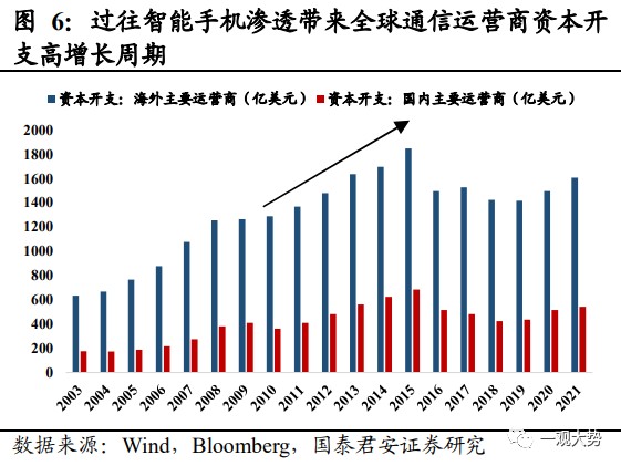 智能手机产业趋势下,基础设施端 - 硬件端 - 应用端 - 软件端的行情演绎节奏有其必然性。一方面,3G 建设是智能手机加速发展的基础。智能手机具有优秀的操作系统、可自由安装各类软件、完全大屏的全触屏式操作感这三大特性,这意味着智能手机的出现需要数据传输能力和图像处理能力的大幅提升,而 2G 网络基本只能满足文字传输需求,所以 3G 的出现是智能手机快速发展的前提。我国 3G 的集中建设期为 2007 年至 2010 年,国内电信运营商在 2008 年年底发放 3G 牌照,2009 年达到投资峰值,2010 年实现了基本覆盖,而在随后的 2011 年,国内智能手机开始崛起。另一方面,智能手机的软件开发基本是一个从零开始的过程。操作系统是智能手机的灵魂,软件的开发必须基于操作系统,在操作系统和智能手机推出后,人们才能着手于手机软件的开发,此外更值得强调的是智能手机开辟了移动设备的先河,因此相应对其内容端应用的探索也是从 0-1 的过程,这就导致了硬件端的发酵早于软件端。