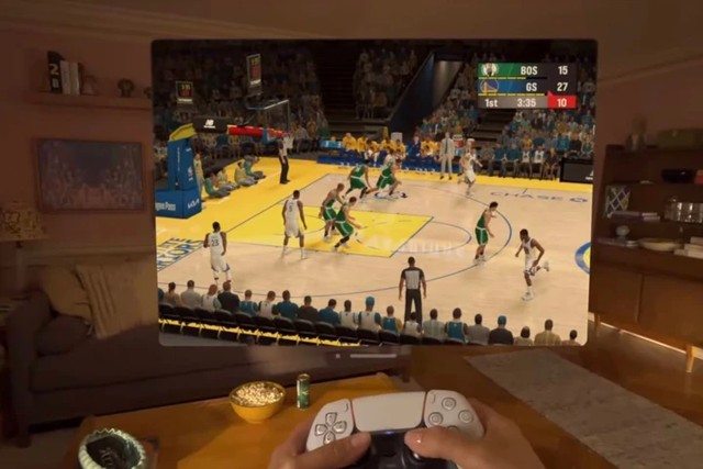 此外,发布会展示的是人们在头显内的平板屏幕上玩街机游戏,而不是真正 VR 的沉浸式体验。这似乎在强调苹果更在乎增强现实的体验。