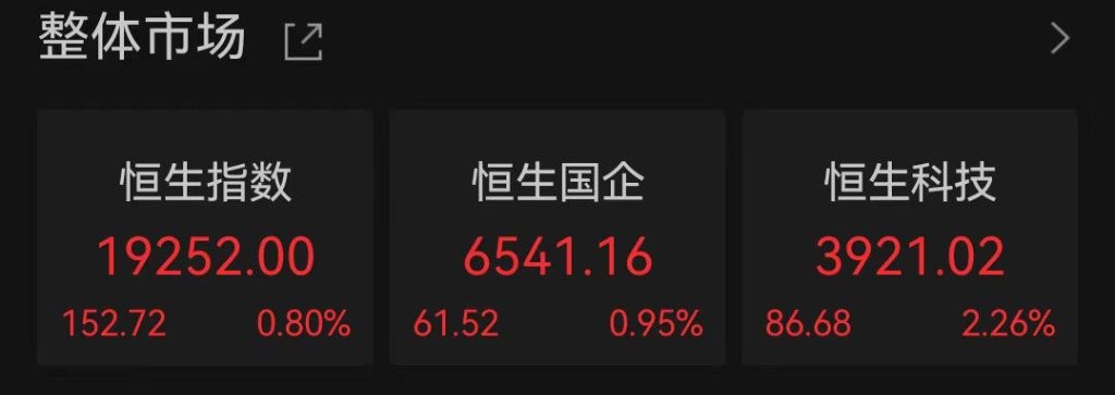 6 月 7 日港股高開,恒指、國企指數高開超 1%,恒生科技高開 2.33%。隨後三大指數全天保持高位,恒生科技收漲 2.26%,恒指收漲 0.8%,國企指數收漲 0.95%。