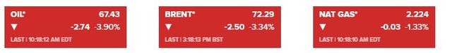 國際油價跌幅擴大,美油 WTI 跌超 4% 並下逼 67 美元,完全回吐沙特自願額外減產 100 萬桶/日以來的漲幅。布倫特原油跌 3.5% 並下逼 72 美元。市場擔憂需求前景和俄羅斯供應增加。