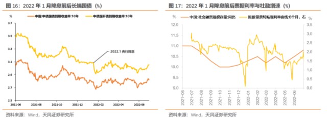 2021 年 7 月本輪寬鬆週期開啓,兩次降息 2022 年 1 月 17 日和 2022 年 8 月 15 日,OMO 利率和 MLF 利率均是同日調降。