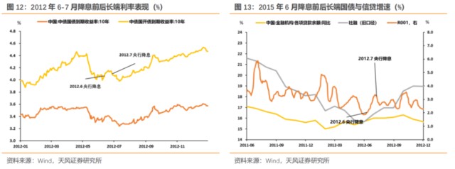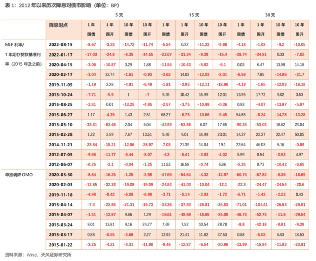 2012年6-7 月的兩次降息,在降息後一個交易日內,10 年期國債分別下行 7BP 和 2BP,10 年期國開分別下行 8BP 和 6BP。兩次降息,一共帶動 10 年期國債和 10 年期國開分別下行 14BP 和 20BP。