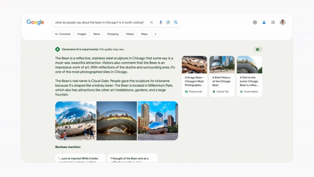 當地時間週三,谷歌其生成式 AI 搜索實驗(SGE: Search Generative Experience)的多項新功能,新功能演示的場景是旅遊和購物。