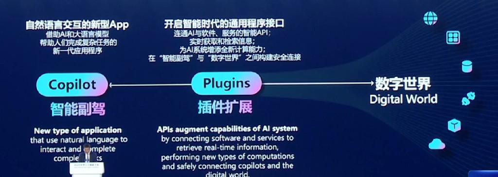 其中最重要的一項是我們向全球開發者開放了 Copilot 智能副駕與 plugins 插件拓展體系,讓全球各地的開發者、合作伙伴和企業用户都能夠抓住生成式人工智能帶來的創新機遇,創造出前所未有的新一代的智能應用。