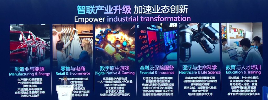 根據近期全球客户的產業智能化解決方案,侯陽表示,微軟總結出的六個重點的行業應用人工智能的創新化場景,包括製造業與能源、零售與電商、數字原生遊戲、金融及保險、生命科學和教育與人才培訓: