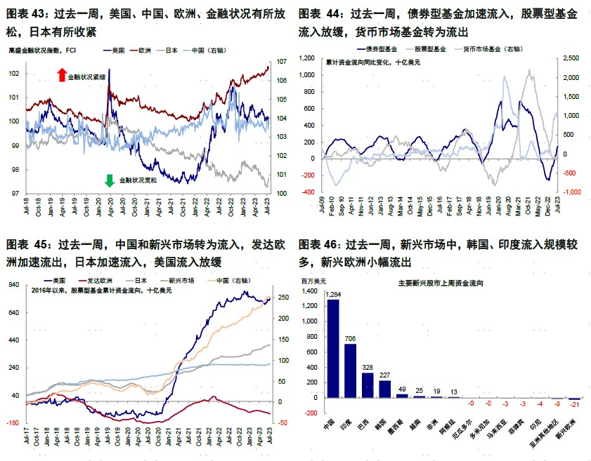 二季度美國金融流動性指標之所以反而擴張,主要是得益於:1)增量上美聯儲提供大量的短期借款如 BTFP 等來支持問題銀行的流動性;2)減量上,債務上限約束了財政部發債。展望三季度,隨着銀行危機逐漸平息後借款需求減少和逐漸到期,以及債務上限的解決,上述兩項都將逆轉。我們測算金融流動性指標從當前 5.62 萬億美元降至 5.47 萬億美元,回到去年末水平。