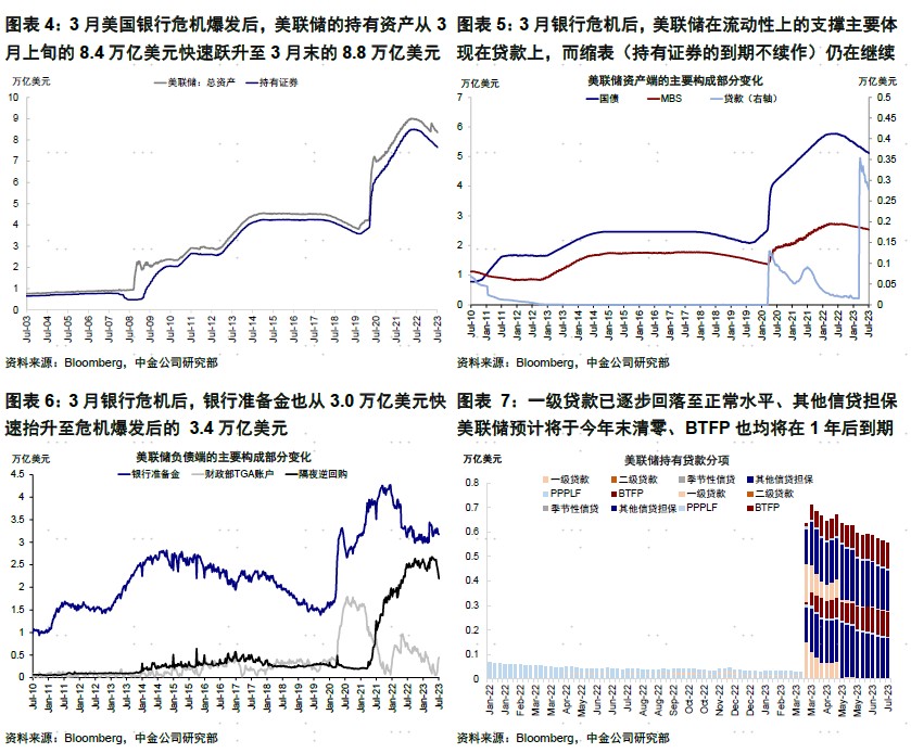 二、美國金融流動性的變化:繼續縮表 + 銀行危機後美聯儲借款逐漸到期 + 債務上限後財政部暫停發債