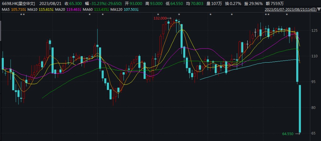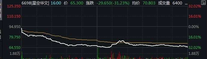 星空華文今日繼續大跌,收跌 31.23%,跌幅超過上一交易日。