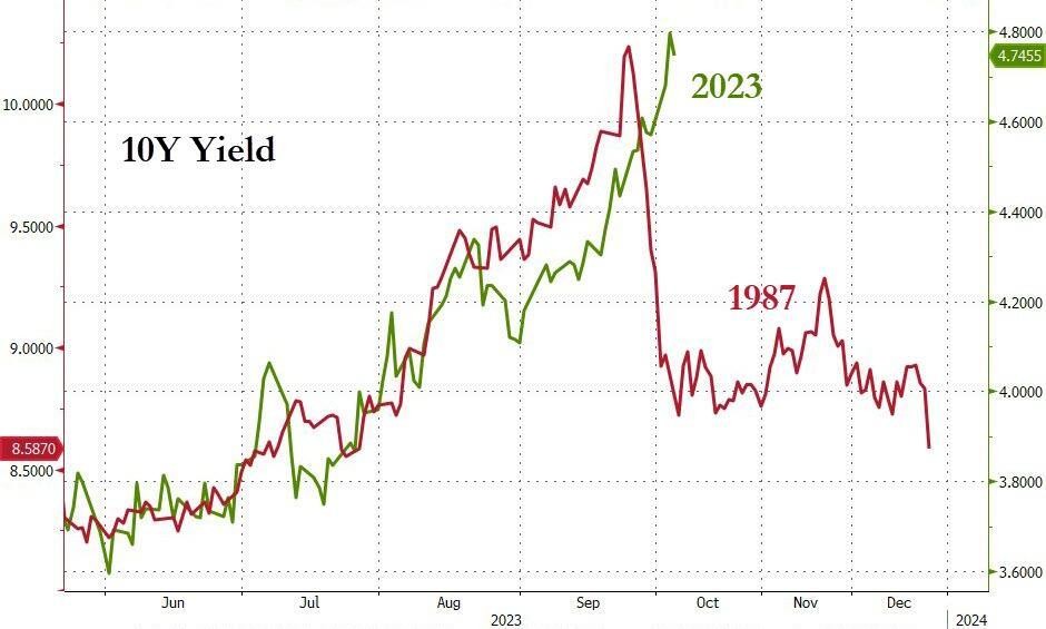 Edwards 認為,隨着美國國債收益率的攀升,股市所呈現的韌性讓他回想起了 1987 年,最終股市投資者的樂觀情緒還是被澆滅了: