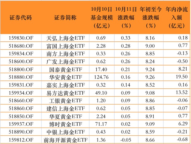 賺錢效應下,黃金類 ETF 也獲得資金湧入。Wind 數據顯示,截至 10 月 10 日,今年以來約 49.26 億元資金流入黃金類 ETF。