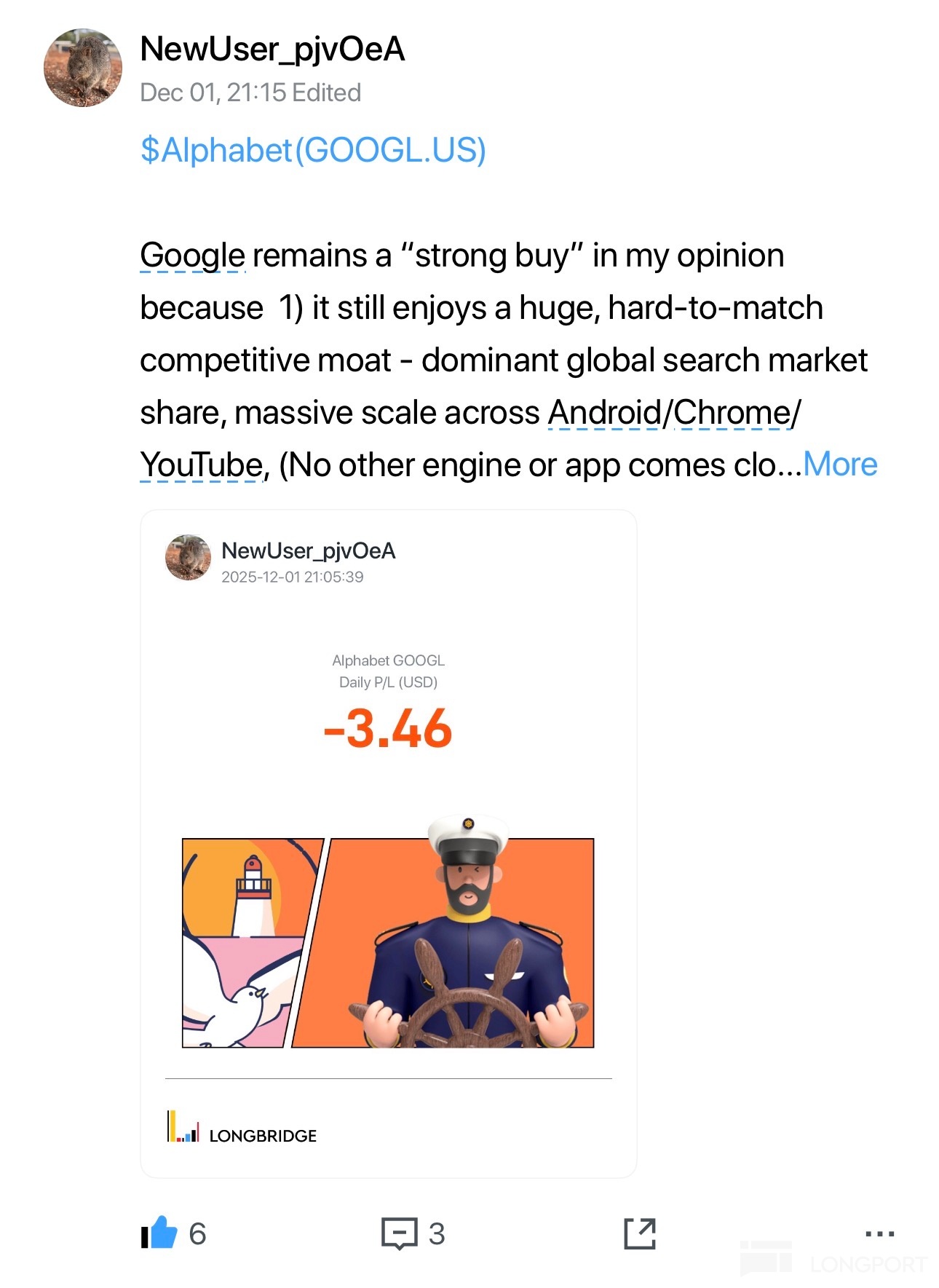 3️⃣ Investment Sharing on $Alphabet(GOOGL.US) by @NewUser_pjvOeA