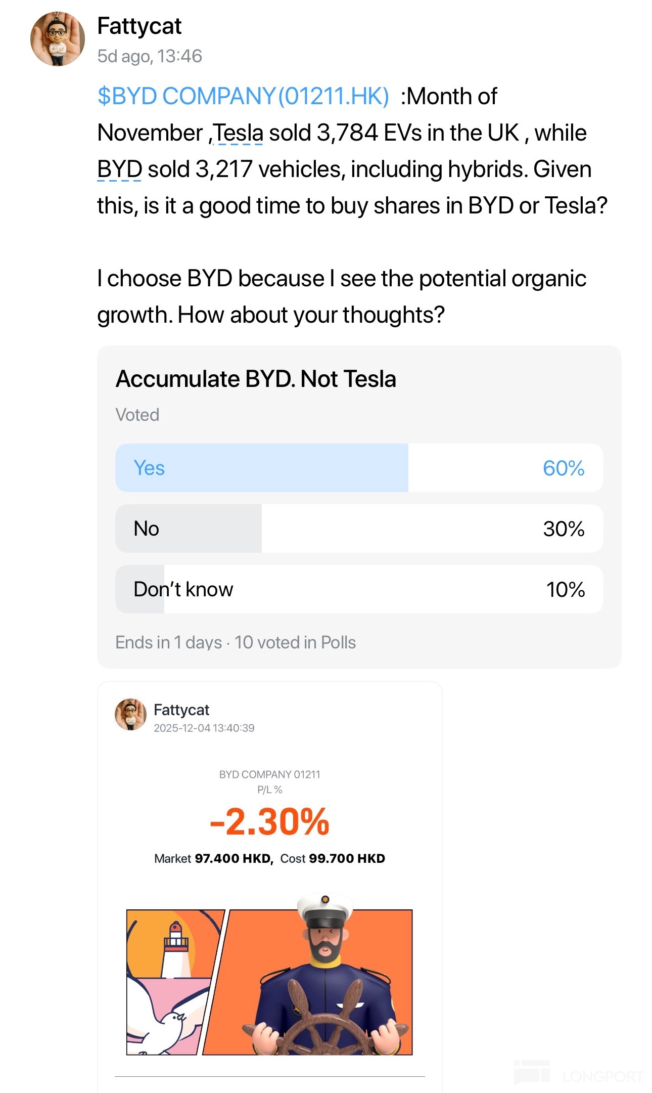2️⃣ Discussion on $BYD COMPANY(01211.HK) and $Tesla(TSLA.US) by @Fattycat