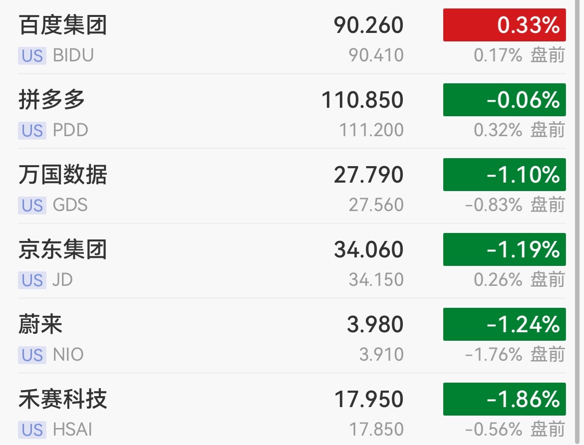 3. Most popular Chinese stocks fell in pre-market trading, GDS down over 3%, Nio down nearly 2%, WeRide up nearly 15%.