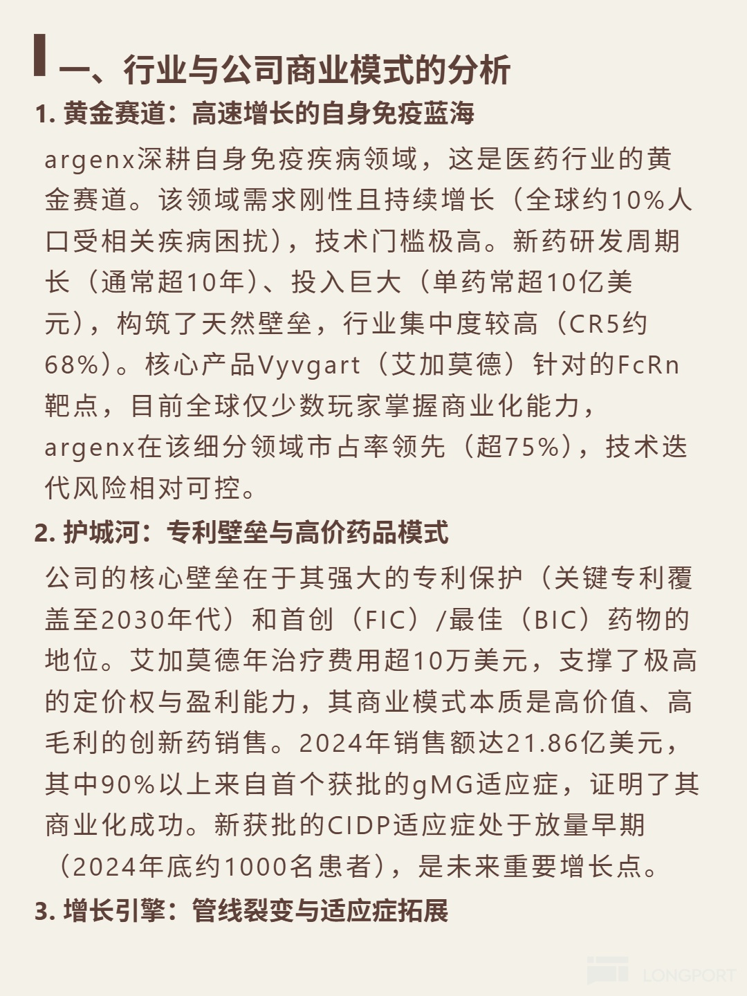 🎯 Core logic: Deep cultivation in the golden track of autoimmune diseases (10% of global population affected, CR5 reaching 68%), core product Vyvgart targets FcRn with over 75% market share. Business model relies on patent barriers (covering until the 2030s) and high-priced drugs (annual treatment cost exceeding $100,000), pipeline fission strategy advancing 9 late-stage clinical indications, continuously expanding market space.