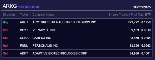 买入 1760 万美元奈飞,由于第三季度盈利远逊于市场预期,并下调了全年业绩指引,开盘即暴跌超 7%,收盘时跌幅扩大至 10%。抄底买入 230 万美元 ARCT,昨晚跌幅-50.17%,这两只股单日急跌,现在看已经开始微涨。