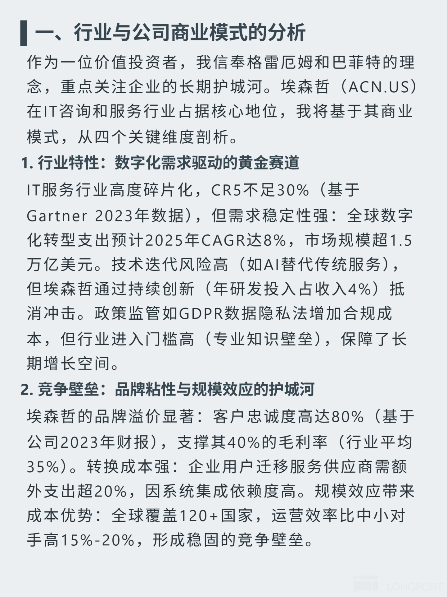 $Accenture(ACN.US)$IBM(IBM.US) $DEQING B2703(04554.HK) Recently researched Accenture, with the core logic being its long-term moat in IT consulting services + value investment supported by robust financial quality.