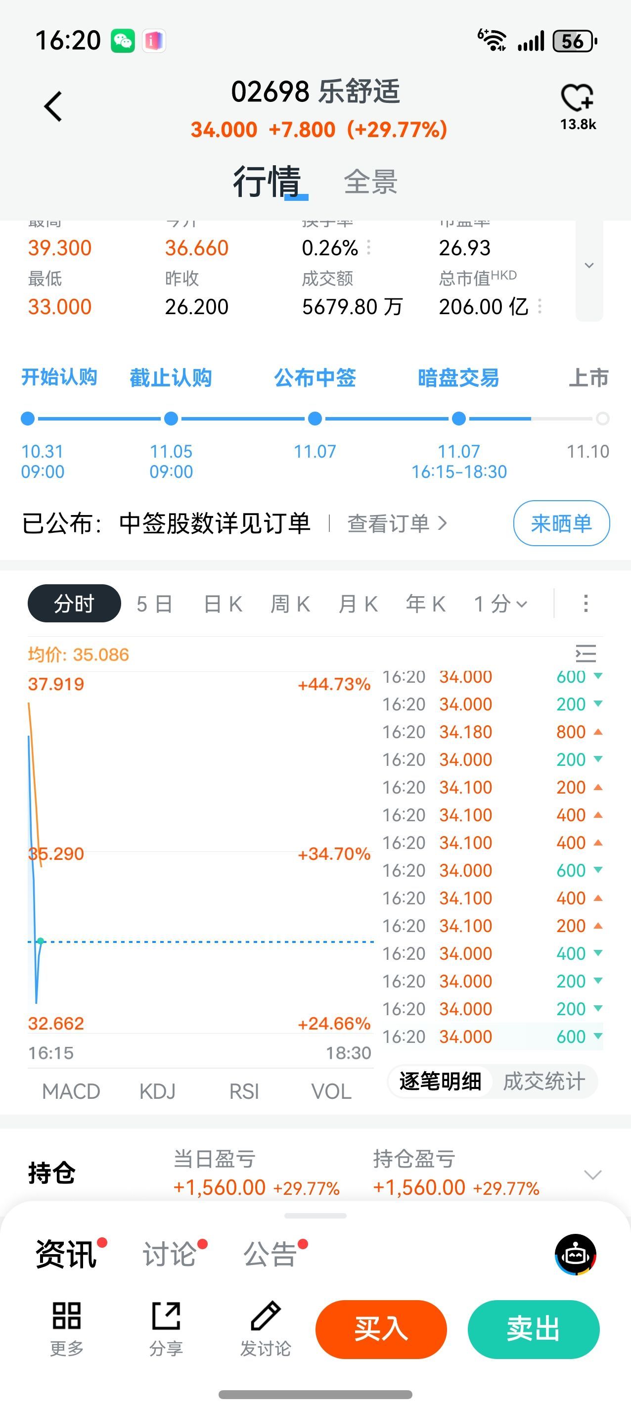 OrdersLet's eat meat, happy and comfortable, IPO in Hong Kong stocks, [happy][cheer] think the market will still rise tomorrow