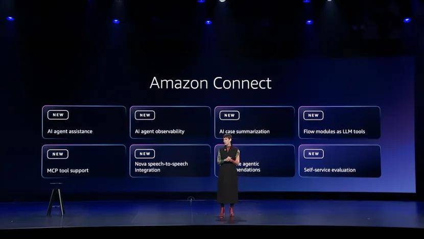 Technically, Amazon Connect adds 8 AI features, including neural voice integration (Sonic) for human-like speech, real-time recommendation Agents, and AI-driven predictive insights. As demoed: in a credit card fraud scenario, the Agent verified identity, predicted risk via location/transaction patterns, and prepped all materials—half-solving the issue before the human answered.