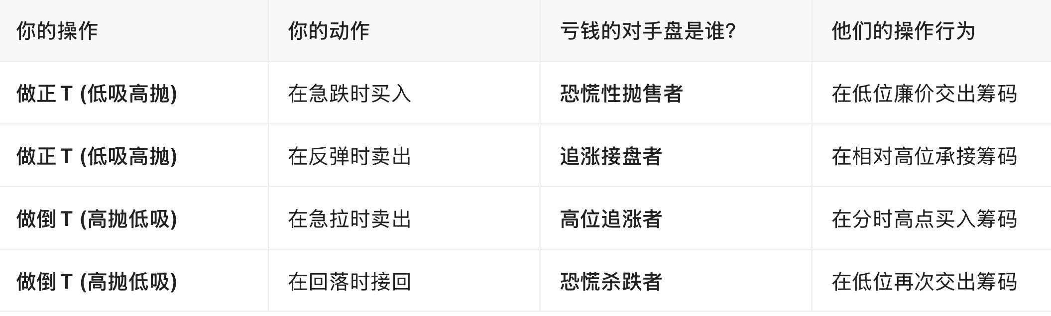 Day trading (T) is using short-term price fluctuations to average down holding costs.