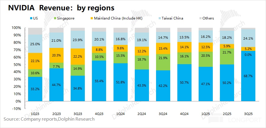 a) China is largely lost: NVDA used to sell H20s into China, but after the ban, China’s contribution fell to ~5% of revenue (from ~20% historically). Given management’s disclosure of roughly US$50mn H20 sales, last quarter’s China revenue was primarily PC and gaming, not AI chips.