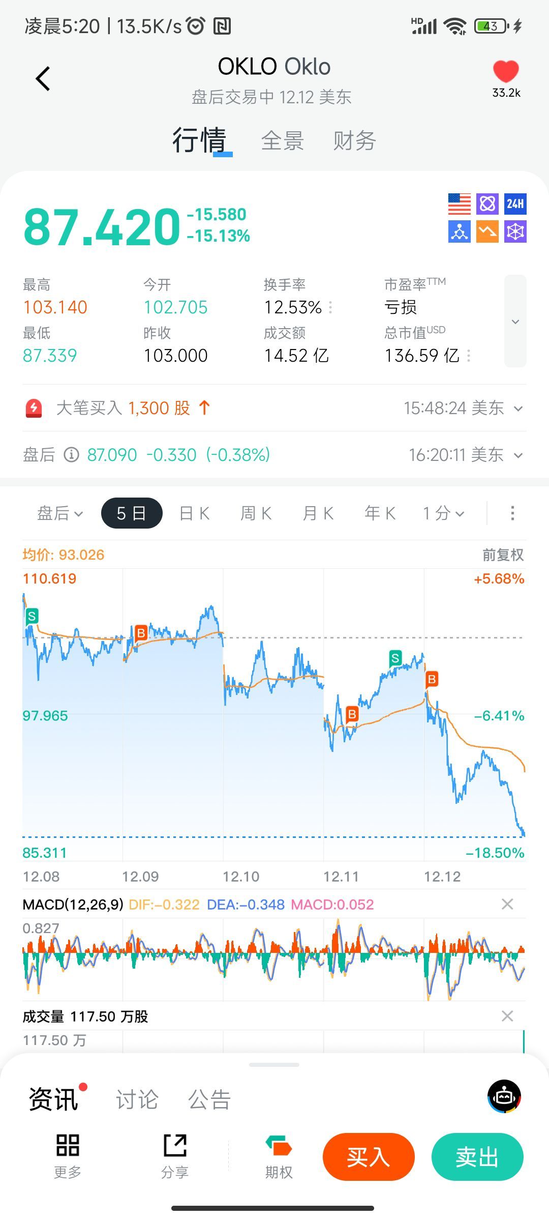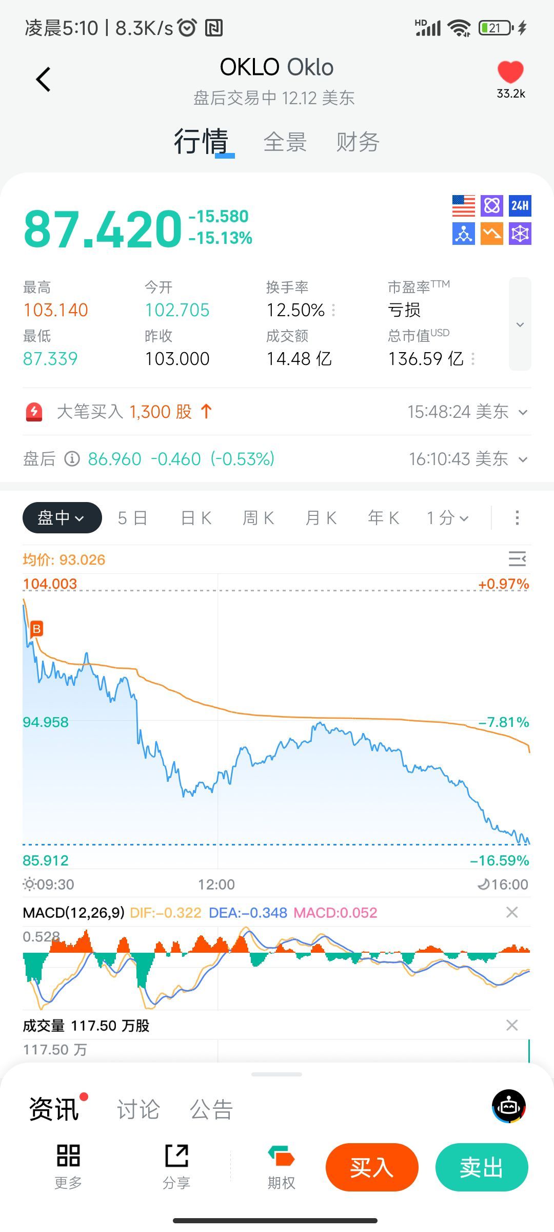 I fell asleep after 11 PM on Friday and woke up at 3 AM on Saturday. I couldn't help but laugh bitterly at myself. Just today, large-volume trading resumed, and I ended up losing 15%. Oracle's big drop on Thursday didn't affect these stocks at all. Broadcom's earnings report was so good, yet it still dropped sharply. These stocks fell even harder. Individual selling couldn't possibly cause such a steep decline. It's institutional investors cashing out and moving to other sectors again. Wait a while, and when institutions see the low prices, they'll come back in.