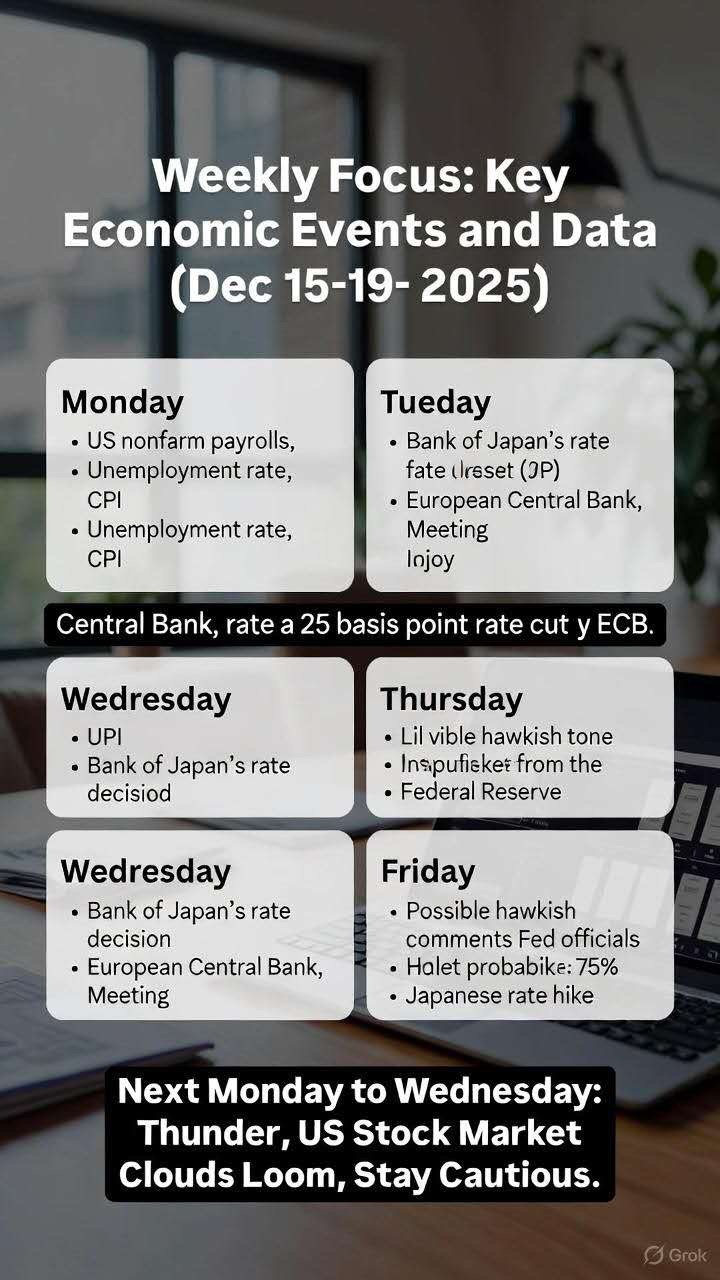- This week is indeed the most intensive economic data week before year-end, especially US November non-farm payrolls (delayed due to government shutdown, expected Tuesday 12/16) and November CPI (Thursday 12/18), which will have major market impact.