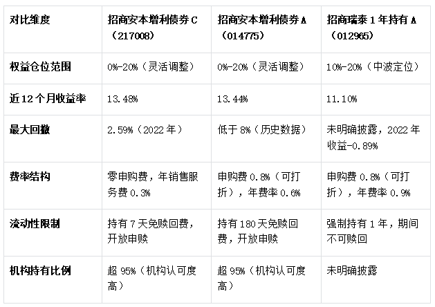 Comparing with the same company's mid-volatility fixed income + representative, the China Merchants Ruitai 1-Year Holding Mixed A (012965), further highlights the adaptability advantages of the China Merchants Anben Bond Fund Class C (217008) and Class A (014775):
