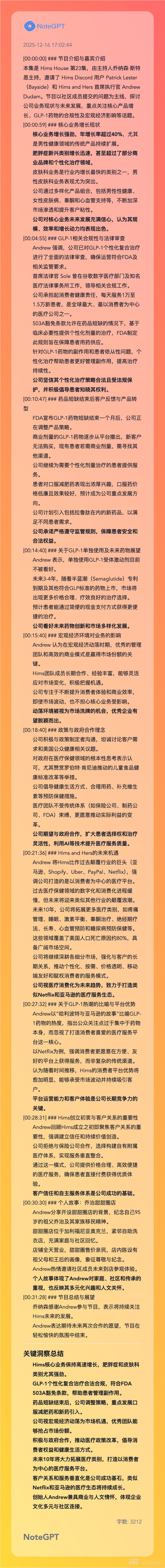 YouTube recommended me an interview with Dudum in the Hims stock forum. From his interview, I feel like he wants to create an OnlyFans for the healthcare service industry. If you're interested, let's discuss it together. This video was released on March 28, 2025. His remarks at the time, combined with recent share reduction details, are a bit hard to take. If you don't want to watch the video, you can check the summary screenshot at the end.$Hims & Hers Health(HIMS.US) $Defiance Daily Target 2X Long HIMS ETF(HIMZ.US)