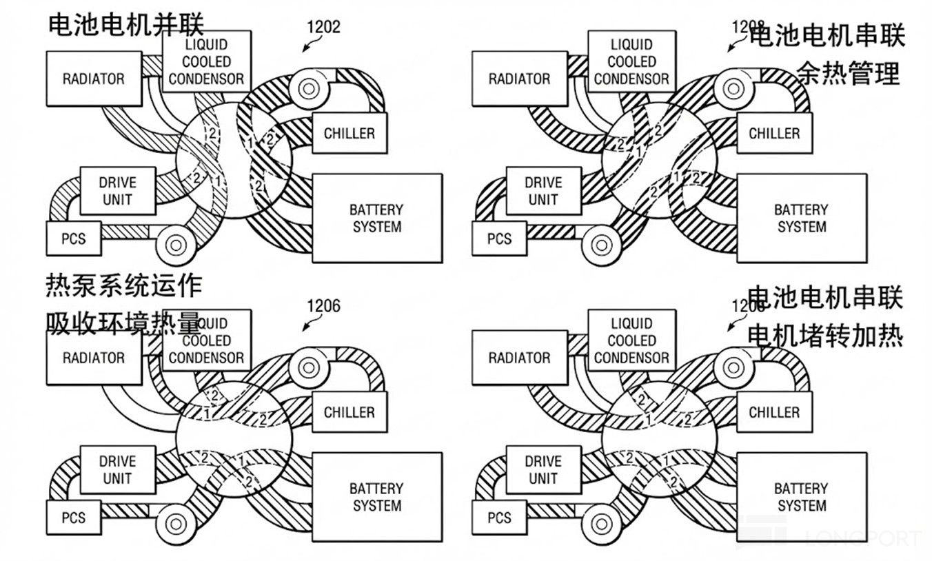 Tesla has iterated through four generations (Gen 5 under development), with rising integration. In Gen 4, the main upgrades are as follows. Figure: Tesla Gen 4 thermal system modes