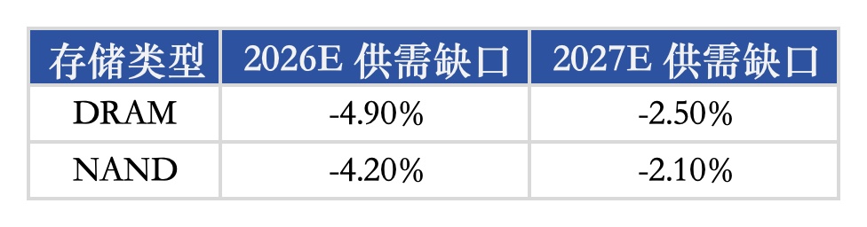 Table 1: DRAM and NAND Supply-Demand Gap Forecast (2026E/2027E)