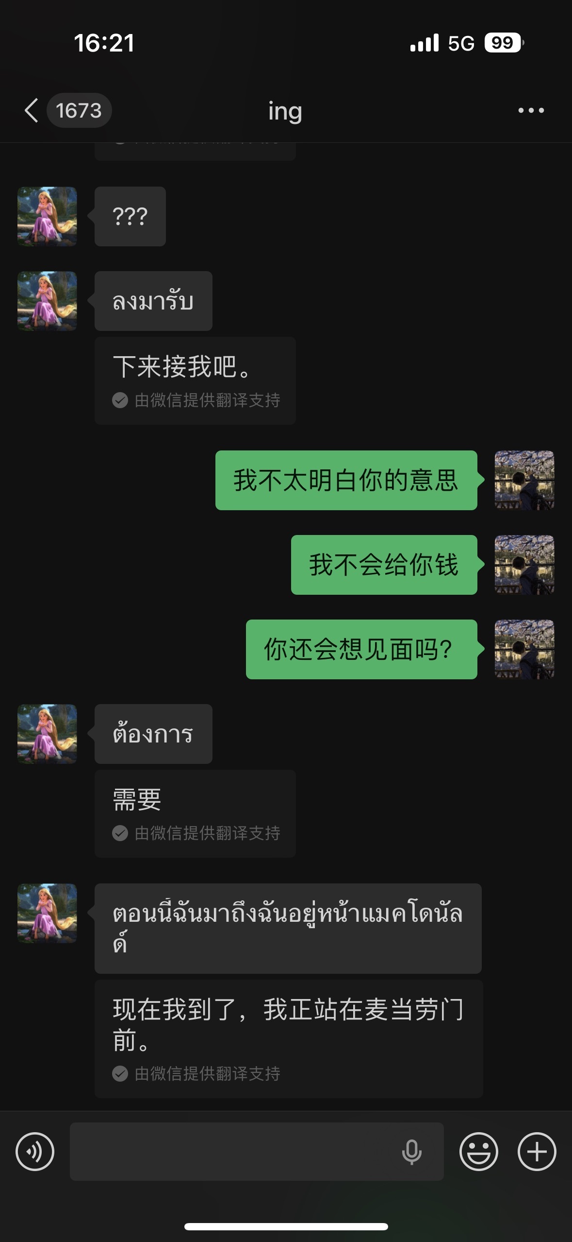 After I refused, they changed their tune and said they didn't want money, just wanted to keep me company.